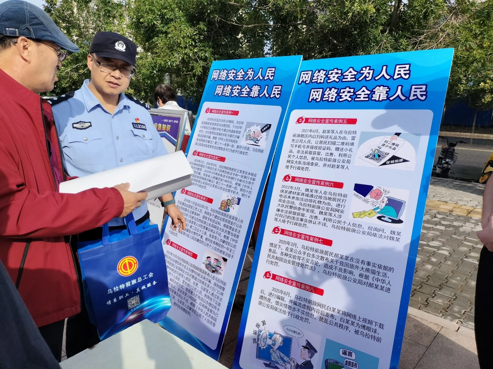 为深入贯彻落实习近平总书记关于网络强国的重要思想,切实增强全民网络安全意识,提升网络安全防护技能,9月15日,乌拉特前旗科协积极参与国家网络安全宣传周活动,以实际行动为构建安全、健康、文明的网络环境贡献力量。