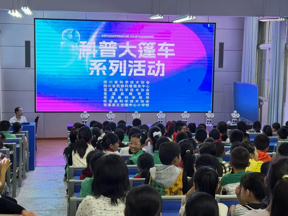 在全国首个科普月来临之际,四川省科协民科中心联合广元市科协、旺苍县科协、苍溪县科协和昭化区科协,于2025年9月8日-9月12日,以科普大篷车为载体,深入基层学校开展“流动科普百县千车万里行”一系列内容丰富、形式多样、互动性强的科普活动,将科学的种子播撒在孩子们的心田。科普列车驶进校园,将科学梦想照进现实。紧紧围绕“全国科普月”主题,以“流动科普百县千车万里行”为契机,充分发挥科普大篷车“流动科技馆”的独特职能,组织科普大篷车队伍先后驶入旺苍县红军小学、木门小学、苍溪江南初级中学、五龙镇小学以及广元市昭化区实验小学,开展了五场别开生面的科普进校园活动。活动累计服务师生超过9000人次,展出互动展品20余件,开展科学实验秀4场,机器人及四足机器人表演5场。活动现场气氛热烈,欢声笑语不断,科学的魅力在校园里尽情绽放。