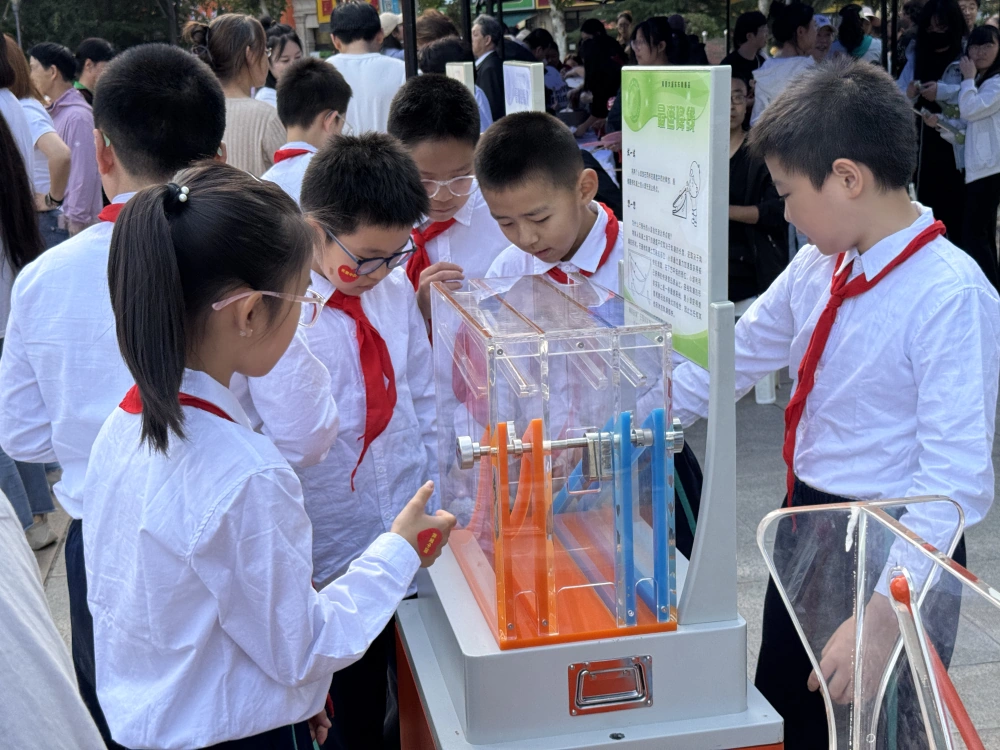 科普展示与体验区成为活动焦点,城关区科协带来的科普大篷车展出涵盖声、光、电、磁等多领域的互动展品,包括锥体上滚、磁力传动摆、懒惰环等趣味装置。青少年及居民在亲手操作中,直观感受重心变化、惯性作用等科学原理,科普志愿者同步用通俗语言讲解展品奥秘,将晦涩知识转化为可感体验。这种“动手实践 + 原理讲解”的模式,不仅激发了参与者的科学探索兴趣,更实现了科学知识的生活化传播。