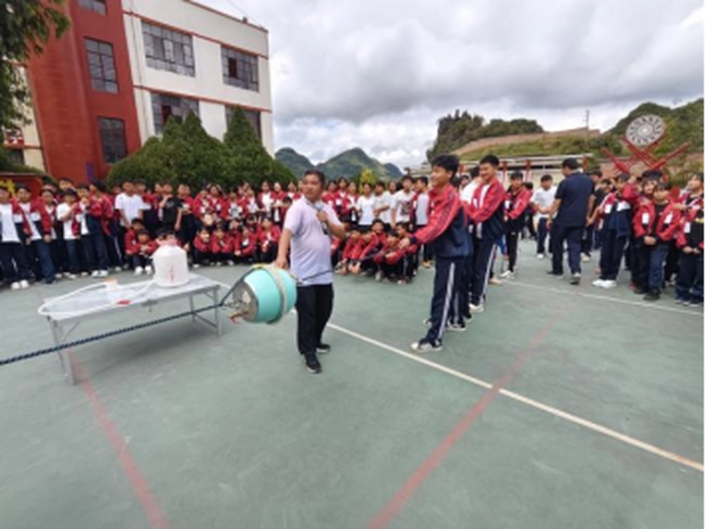 青少年是科技创新的未来希望。活动期间,科普志愿队伍特别注重面向在校学生的科普教育,走进富宁县木桌小学、木令小学以及广南县的黑支果小学、黑支果中学四所学校学校,为学生们带来了一场场充满趣味与启发的科技互动体验。操场上,灵活的机器人跟随着音乐节奏起舞,憨态可掬的机器狗展示着各种高难度动作,无人机在空中划出优美轨迹,智能遥控赛车进行着激烈的竞速表演,引得同学们惊叹连连,欢呼声此起彼伏。在科学实验环节,志愿者们通过马德保半球实验生动演示了大气压力的巨大力量;利用静电发生装置让同学们亲身感受静电的储存与瞬间释放带来的奇妙现象;精心设计的粉尘爆炸模拟实验,则深刻揭示了特定条件下粉尘燃烧爆炸的原理及其危险性,在确保安全的前提下极大地激发了同学们探索科学奥秘的好奇心。这些互动性极强的展演和实验,不仅让学生们近距离接触了前沿科技,更在他们心中埋下了热爱科学、崇尚创新的种子。