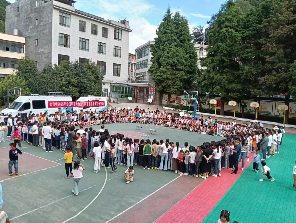 9月18日下午,文山州科协联合州康复医学会、州中医药学会及砚山、丘北、广南、富宁县科协,组成科普志愿服务队,深入广南县黑支果乡中心校开展2025年全国科普月暨国门科普志愿服务联合行动。活动以“科技改变生活 创新赢得未来”为主题,通过“流动科普+精准服务”模式,将科学知识与健康保障送到群众家门口。