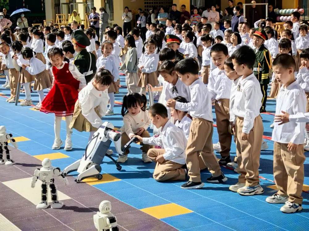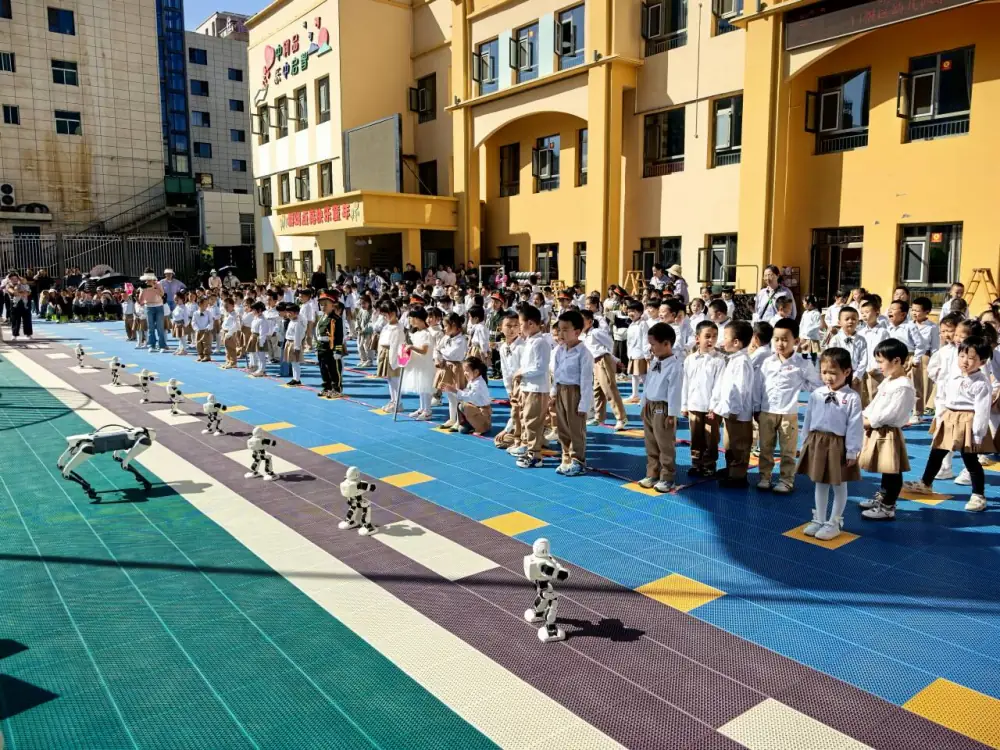 活动现场,整齐划一的机器人与灵动活泼的机器狗成为孩子们眼中的“明星”。随着科技馆讲解员的操作指令,机器人时而灵活地舞动身躯,摆出俏皮可爱的造型;时而跟随音乐摆动身躯;机器狗则迈着稳健的步伐穿梭在孩子们中间,时而摇摇尾巴与小朋友互动,时而表演跨越障碍、跟随指令转圈,翻身和跟小朋友们握手等技能。一个个精彩的表演瞬间点燃了现场氛围,孩子们的欢呼声、惊叹声此起彼伏,大家纷纷围在“科技伙伴”身边,好奇地观察、踊跃地提问,稚嫩的脸庞上写满了对科学知识的渴望,在轻松愉悦的氛围中沉浸式体验了科技带来的无限乐趣。