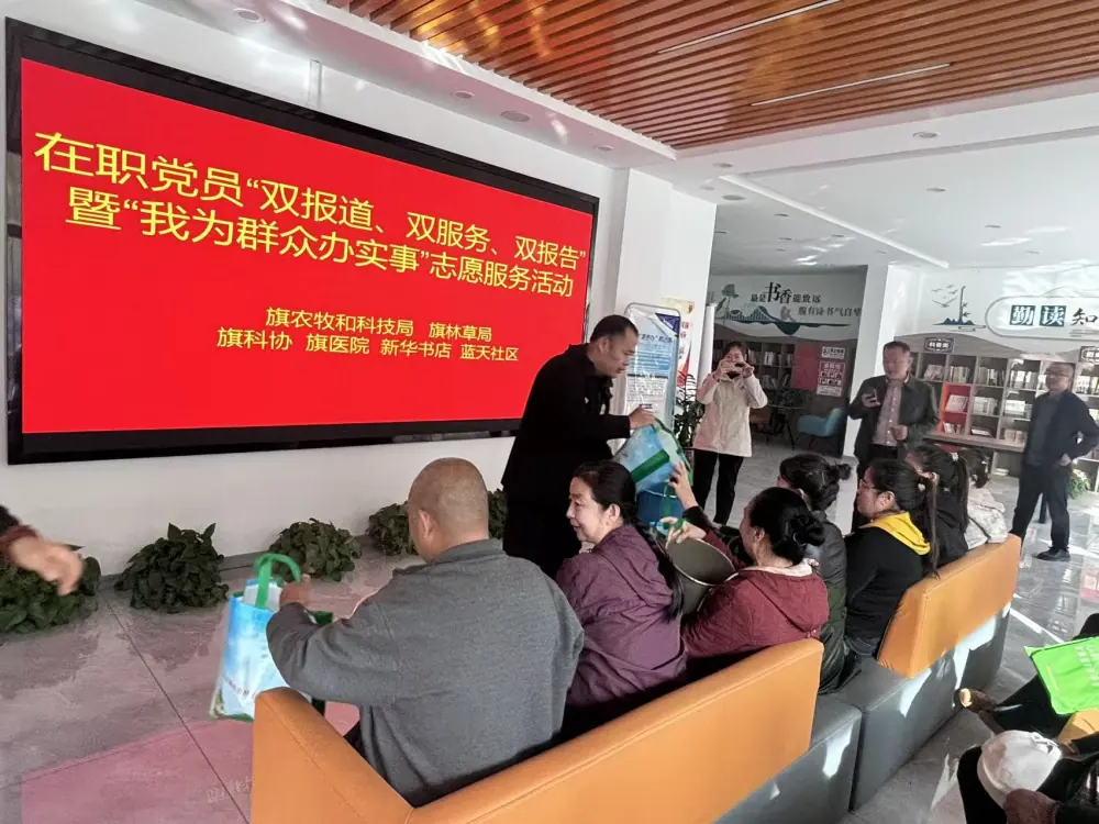 2025年10月11日,察右后旗科学技术协会、农牧和科技局、林草局、新华书店、旗医院多家单位携手,在白音察干镇蓝天社区联合开展在职党员“双报道·双服务·双报告”暨“我为群众办实事”志愿服务活动,以多元服务精准对接群众需求,让基层治理暖意融融。