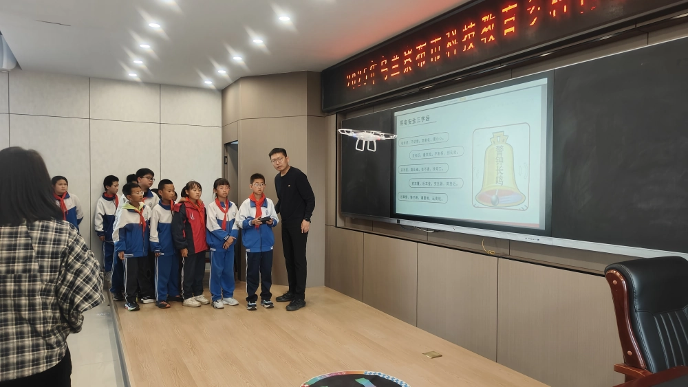 无人机科普环节将活动推向高潮。乌兰察布市无人机讲师田慧老师不仅为同学们讲解无人机的原理、应用等专业知识,还进行现场飞行表演。在老师的指导下,同学们踊跃上台,亲自操控无人机,近距离感受科技的魅力,激发了对航空航天领域的浓厚兴趣。