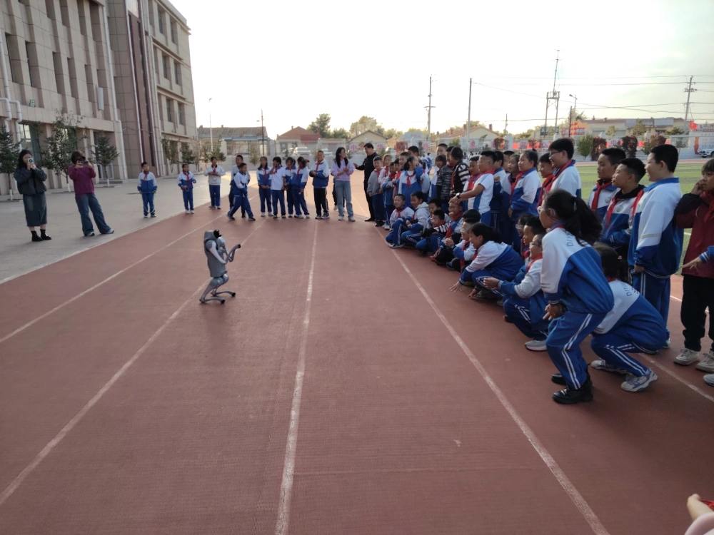 活动尾声,察右后旗科学技术馆的机器狗在操场上大显身手。机器狗灵活地完成翻跟头、打招呼、献爱心、蹲坐、起跑等一系列动作,憨态可掬的模样引得同学们阵阵欢呼,让孩子们直观领略人工智能的神奇。