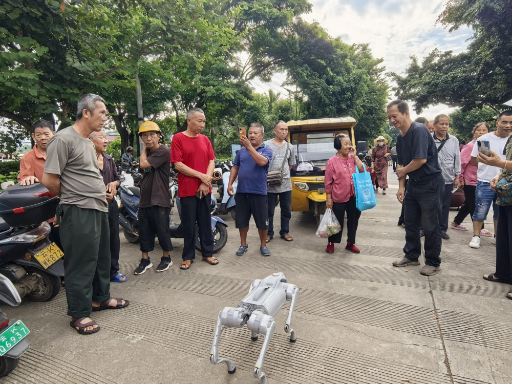活动现场,会灵活转身、避障的机械狗刚亮相便迅速围满人群,尤其俘获了老年居民的目光。“这不就是 9・3 阅兵式上的‘小家伙’吗!” 老人们纷纷凑近触摸、拍照,连连感叹:“电视里看还不过瘾,现场看更震撼,中国科技真是越来越强了!” 这只 “科技明星” 的互动展示,让前沿科技从阅兵场 “走进” 农场寻常生活,点燃了群众对科技的热情。