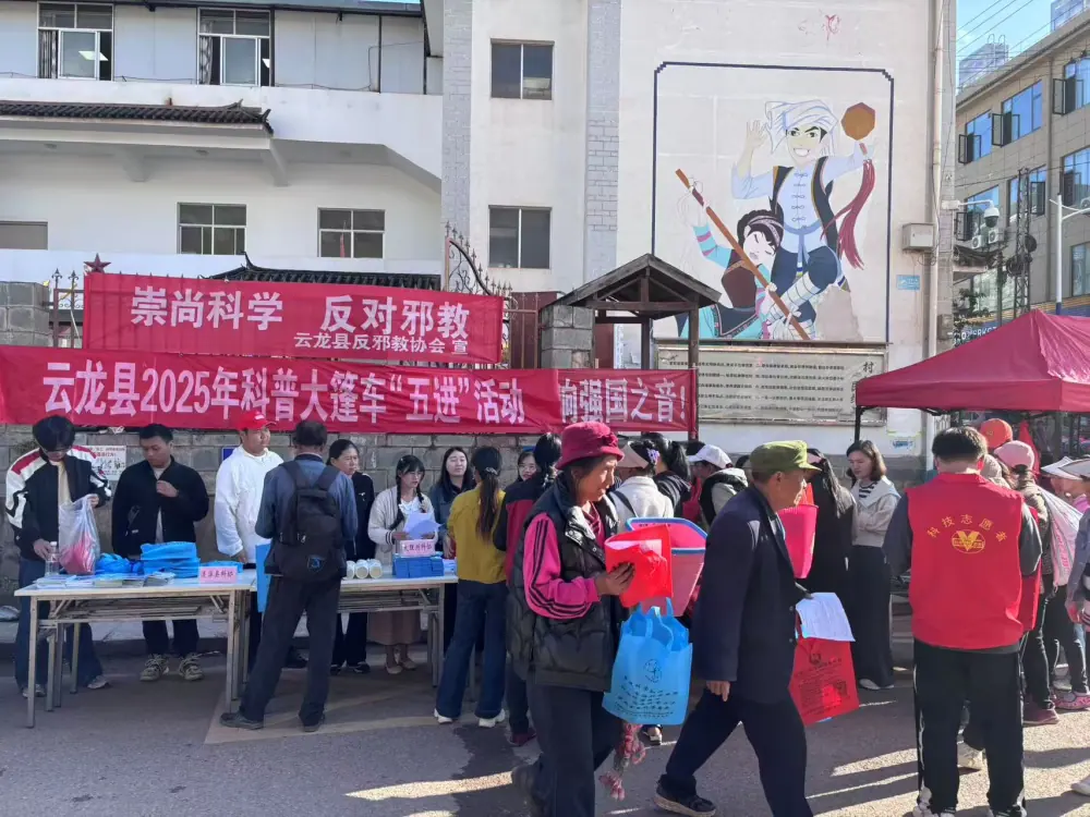 2025年10月14日上午,大理州科协、大理市科协、漾濞县科协、云龙县科协携手云龙消防救援队,将科普大篷车开进云龙县关坪街头,一场别开生面的科普进乡宣传活动在这里热闹开展。
