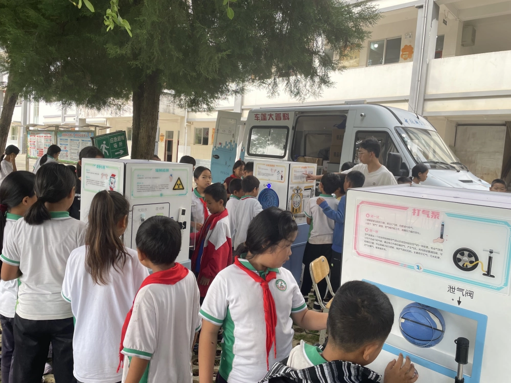 此次活动展出的科普大篷车内装载设备涵盖:光学、力学、电磁学、数学思维等多个领域。在活动现场,孩子们被这些新奇有趣的展品深深吸引,他们围在“小球走迷宫”、“光伏追踪”、“声音分贝”、“隐形键盘”等展具前,或动手操作,或仔细观察,或凝神思考,不时发出阵阵惊叹与欢呼。科协工作人员和科普志愿者耐心地为同学们讲解科学原理,引导他们亲身体验科学的神奇与乐趣,激发了他们对未知世界的好奇心和探索欲。