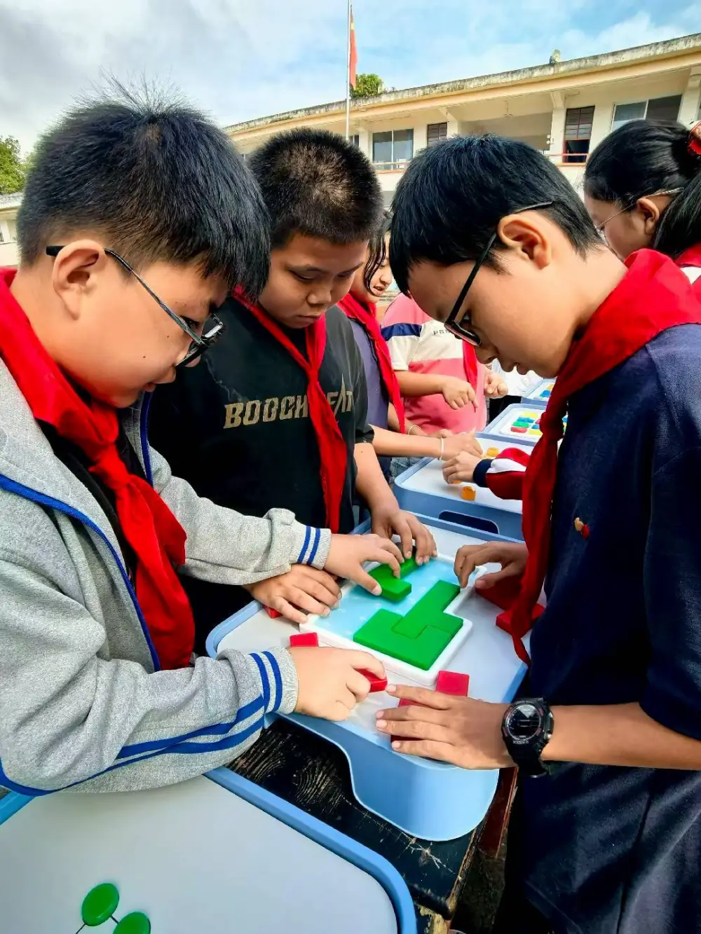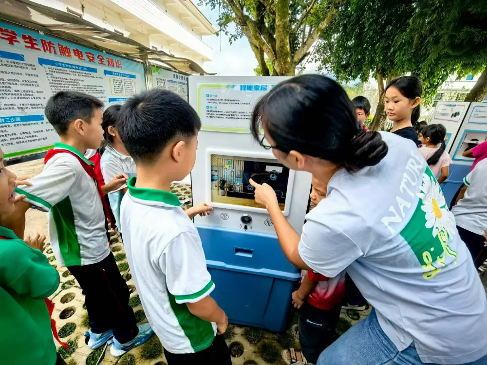 此次活动展出的科普大篷车内装载设备涵盖:光学、力学、电磁学、数学思维等多个领域。在活动现场,孩子们被这些新奇有趣的展品深深吸引,他们围在“小球走迷宫”、“光伏追踪”、“声音分贝”、“隐形键盘”等展具前,或动手操作,或仔细观察,或凝神思考,不时发出阵阵惊叹与欢呼。科协工作人员和科普志愿者耐心地为同学们讲解科学原理,引导他们亲身体验科学的神奇与乐趣,激发了他们对未知世界的好奇心和探索欲。