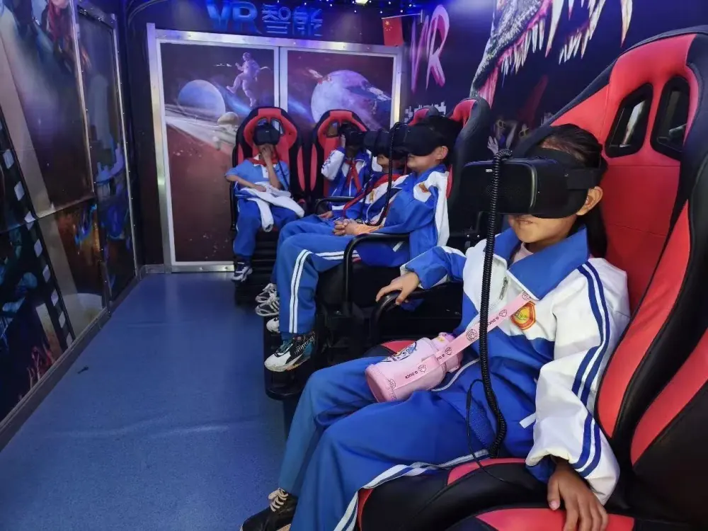 活动现场,VR大篷车一亮相便成为焦点。当同学们依次走进车厢、戴上VR设备,瞬间便“穿越”到奇妙的虚拟世界:时而置身于浩瀚无垠的宇宙,亲眼见证星辰的璀璨与宇宙的神秘;时而“缩小”进入微观领域,近距离探索分子、原子的奇妙运动轨迹。逼真刺激的场景让体验者们不时发出惊叹与欢呼,大家全情沉浸其中,真切感受着前沿科技带来的震撼与趣味。