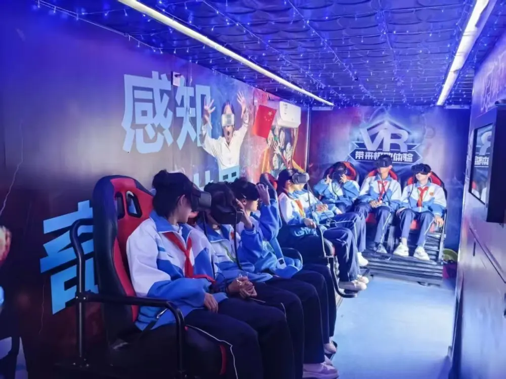 最让同学们期待的当属VR大篷车体验。戴上VR眼镜,仿佛瞬间穿越到另一个世界,有的同学“置身”浩瀚宇宙,近距离观察行星运转;有的“走进”微观世界,探索细胞的奥秘;还有的“体验”了前沿科技成果,沉浸式的感受让大家直呼“过瘾”。这种打破时空限制的科普形式,让抽象的知识变得可感可知,极大地激发了同学们对科学的好奇心与探索欲。