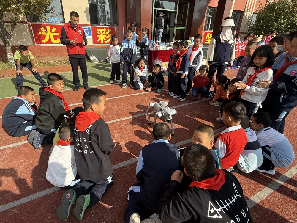 本次活动向保合少中心小学80余名学生捐赠了科普图书、生活用品、学习用具、米面粮油等物资,同时还深入个别学生家中进行慰问。活动中设置了“科普赋能”环节,聚焦科技互动体验。新城区科协联合呼市科技馆等多家单位设置多个特色展位,有大篷车展品区、机器狗互动区、无人机表演区等,在科普志愿者的操作演示下,孩子们响起阵阵欢呼与掌声,既让孩子们在课余收获欢乐,又引导大家探寻动作背后的力学原理,直观感受科技魅力,在心中种下“爱学习、爱科学”的种子。