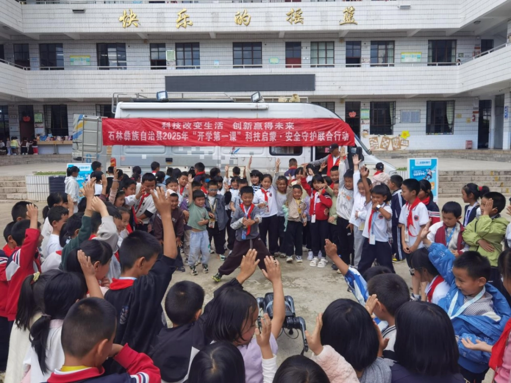 云南省石林县科普大篷车先后驶入圭山小学和圭山幼儿园