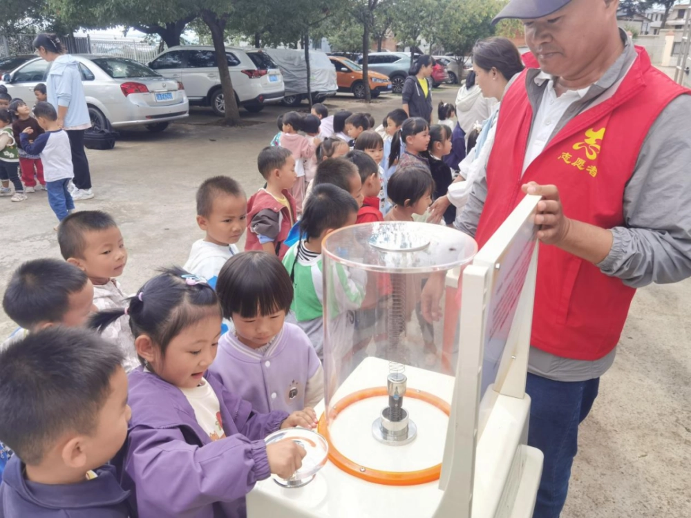 近日,石林县科普大篷车先后驶入圭山小学、圭山幼儿园及圭山乡镇集市,为当地学生与居民带来了流动的科普服务。