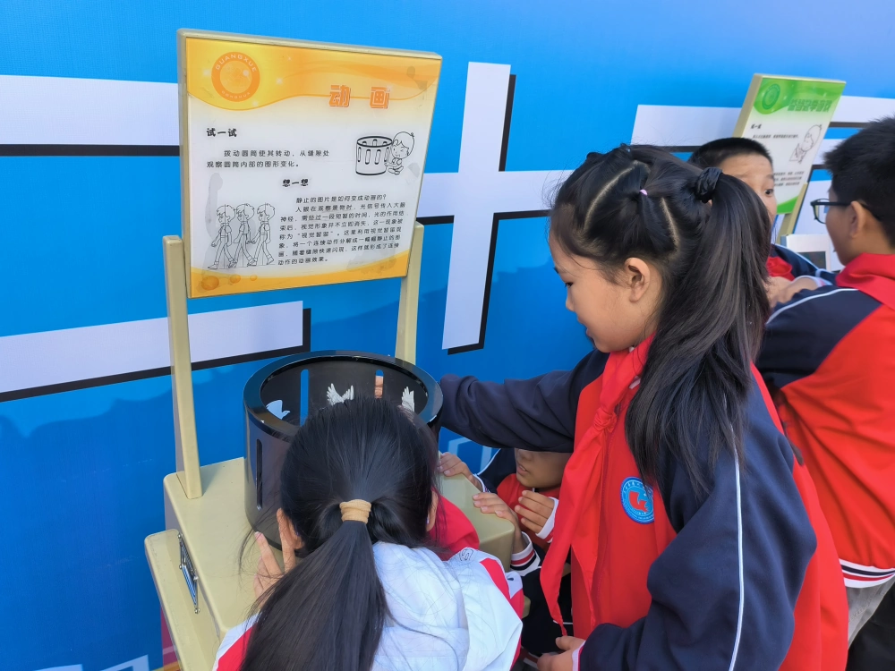 除了观看表演,科普大篷车带来的数十件互动展品更是让同学们过足了“动手瘾”。从展示人体导电奥秘的仪器,到揭示窥视无穷视觉错觉的装置,再到体验无弦琴等技术的设备……同学们三五成群地围在展台前,亲手操作,积极讨论,在探索和玩乐中,理解了科学知识,激发了无穷的好奇心。