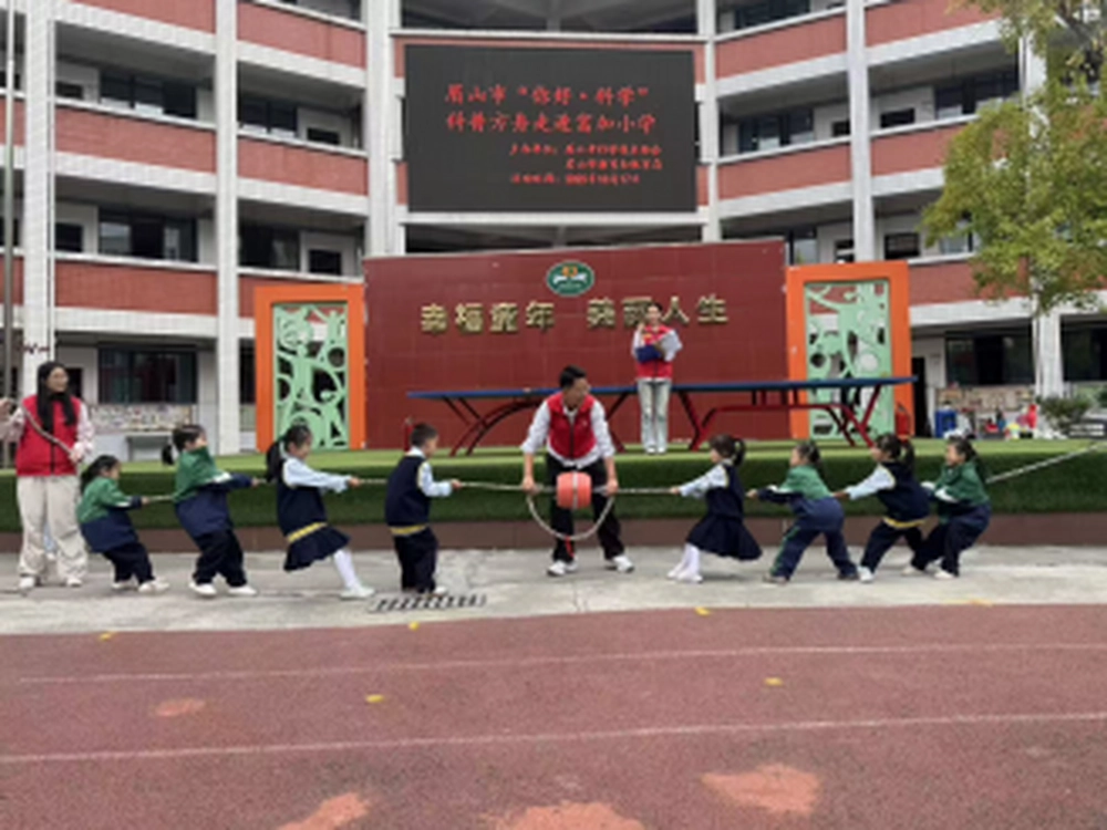 这样的科技魅力,在 2025 年 10 月 17 日上午的富加小学有了生动注解。当天,眉山市科协带来的 “你好・科学” 科普方舟活动,在校园操场上热闹启幕,1800 余名同学沉浸式参与,开启了一场充满好奇与发现的科技体验之旅。