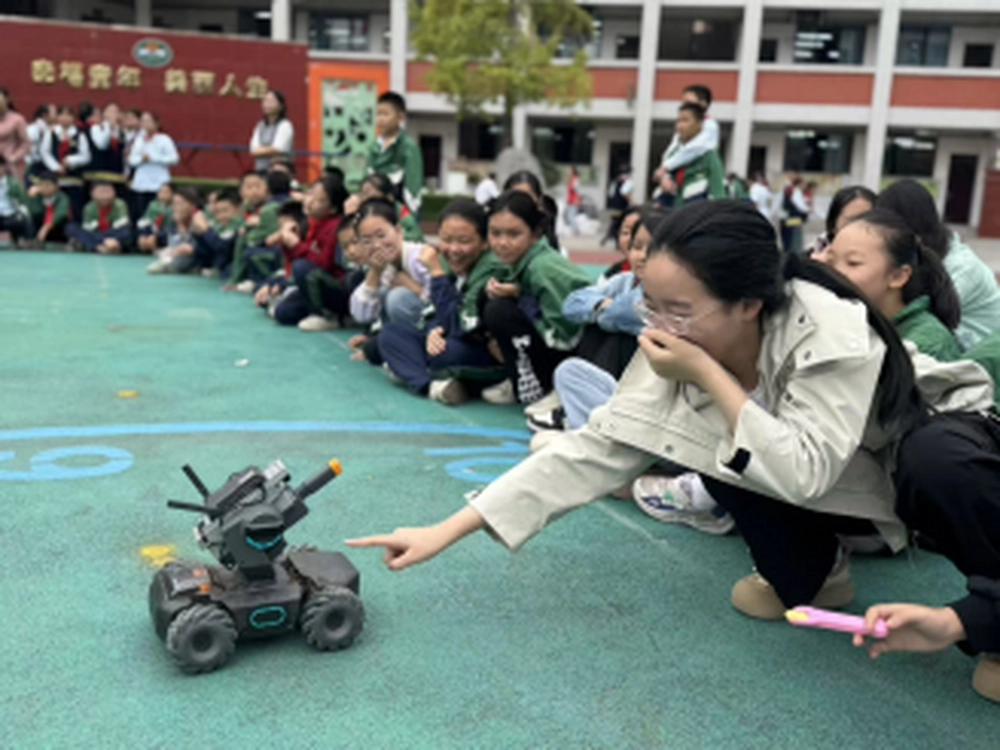 现场,孩子们从被动听讲者变成主动探索者:戴 VR “漫步” 太空、跟机器狗互动、与象棋机器人对弈、操控机甲车。每一次互动拓宽科学视野,每一次尝试培养探索精神。当他们追问 “机器狗怎么跳舞” 时,科学的种子已在心中埋下,伴着热爱生根发芽。