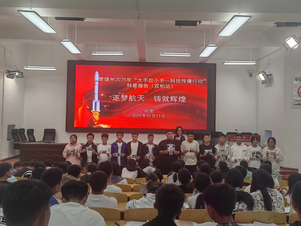 10月13日,由云南省科协、省教育厅、中国科学院昆明分院联合举办的2025年“大手拉小手—科技传播行动”科普报告团走进双柏,为双柏一中和妥甸中学的同学们带来了一场兼具知识性与趣味性的科普盛宴,助力我县青少年科技创新后备人才培养和科学素质提升。