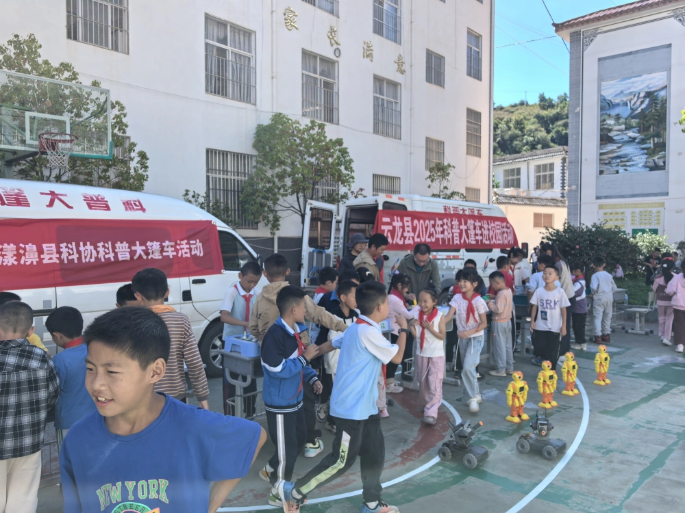 根据大理州科协2025年科普大篷车联合行动(云龙站)安排,为充分发挥科普大篷车流动科技馆的功能,让学生在学校就可以体验科学的魅力,引领全体师生走近科学、热爱科学,培养学生勤动手、善动脑、爱科学、乐创造的科学素养,点亮孩子们心中的科技梦。10月14日,大理州科协联合云龙县、大理市、漾濞县科协、云龙县消防救援局等部门到云龙县长新乡中心完全小学开展科普大篷车进校园联合行动。活动现场,以思维训练、卡丁车、无人机、VR体验、机器狗、机器人、科幻展板、象棋机器人、消防应急现场演练等各种科普体验活动,给师生们现场感受科技的“神奇”。发放科普知识读本、趣味科普读本、崇尚科学反对邪教、防溺水、健康素养等科普知识读物,让师生多形式了解科普知识。