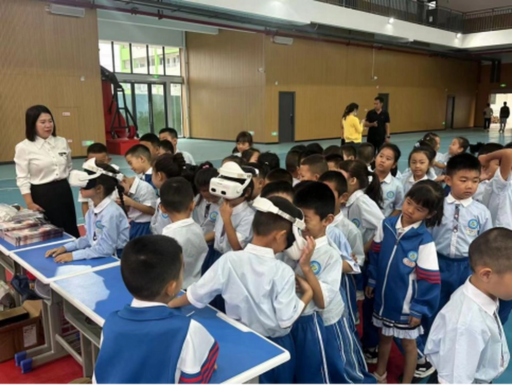仪式结束后,科普大篷车成为同学们追捧的焦点。车内陈列的互动展品,集科学性与趣味性于一体,同学们亲手操作、仔细观察,在实践中解锁科学原理。此外,科普志愿者还带来了“机器人”“VR眼镜”,神奇的科普实验现象让现场尖叫连连,不少同学感叹“原来科学这么有趣”。