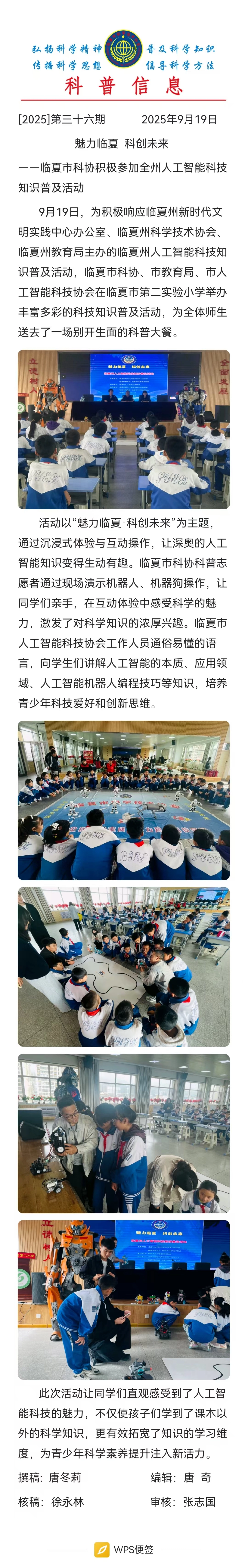 甘肃省临夏市科协积极参加全州人工智能科技知识普及活动