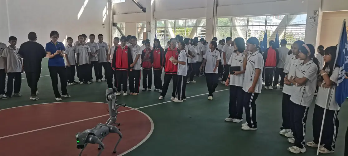 在此次科普大篷车活动中,科普讲解员提供了生动的讲解服务,四足机器人表演更博得师生们阵阵喝彩。