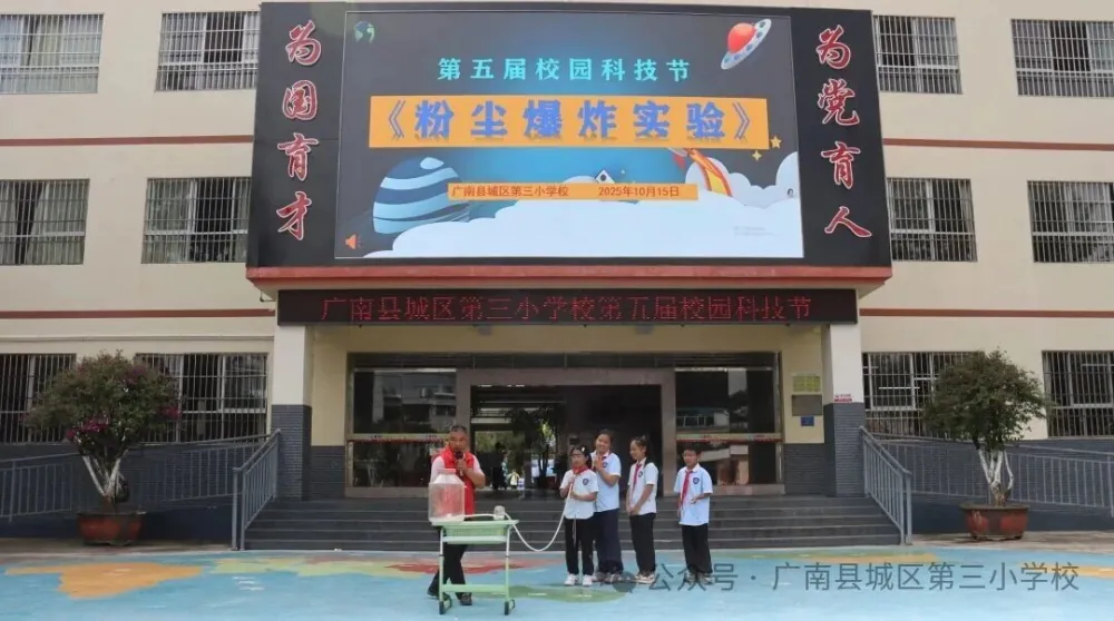 10月15日上午,广南县城区第三小学第五届校园科技节拉开帷幕。为培养学生科学思维与实践能力,广南县科协科普大篷车走进校园参加活动。