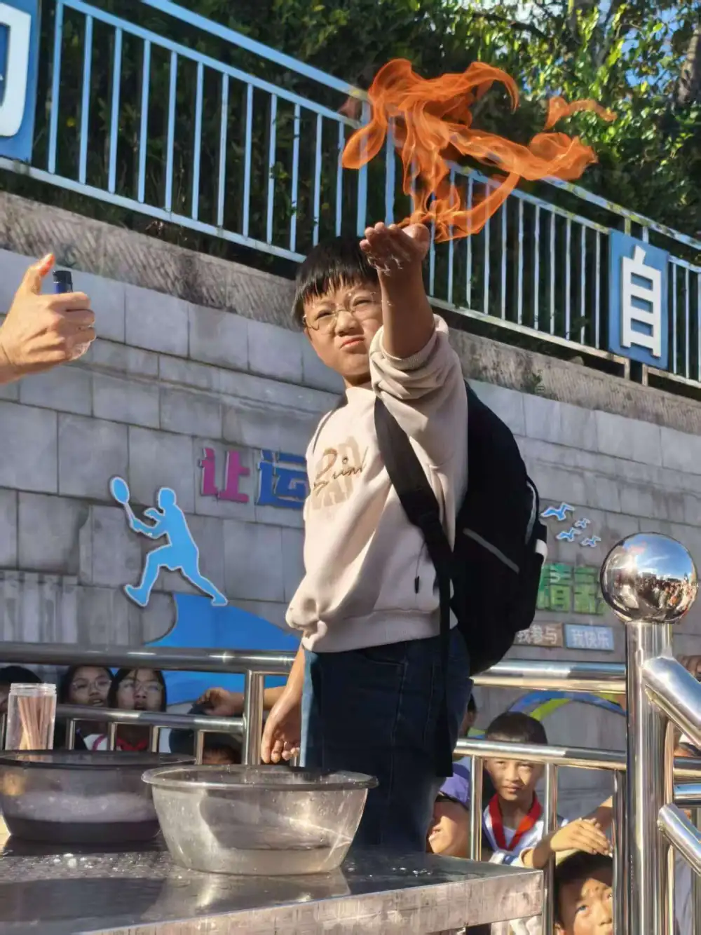 活动现场,师宗县科协工作人员带来了便携式科普展具,包括“手摇发电”“无皮鼓”“光学错觉镜”等互动性强的科普器材,通过直观体验帮助孩子们理解物理原理。过程中志愿者还穿插了空气大炮、火焰掌、马德保半球等趣味实验演示,并邀请师生参与体验,孩子们踊跃举手参与,现场气氛热烈。实验让孩子们透过现象看本质,解了日常现象背后的科学原理,如大气压、空气的流动性、空气的质量等,学生及家长在动手操作中感受科学魅力,极大调动了学生学科学、用科学的积极性。