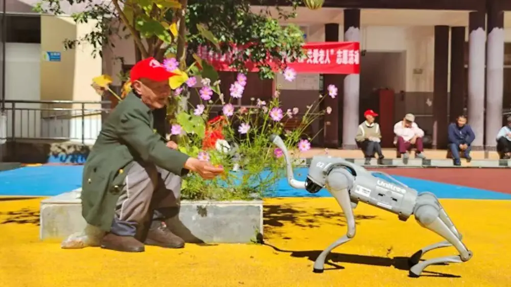机器狗“卖萌”互动,银发老人乐开怀