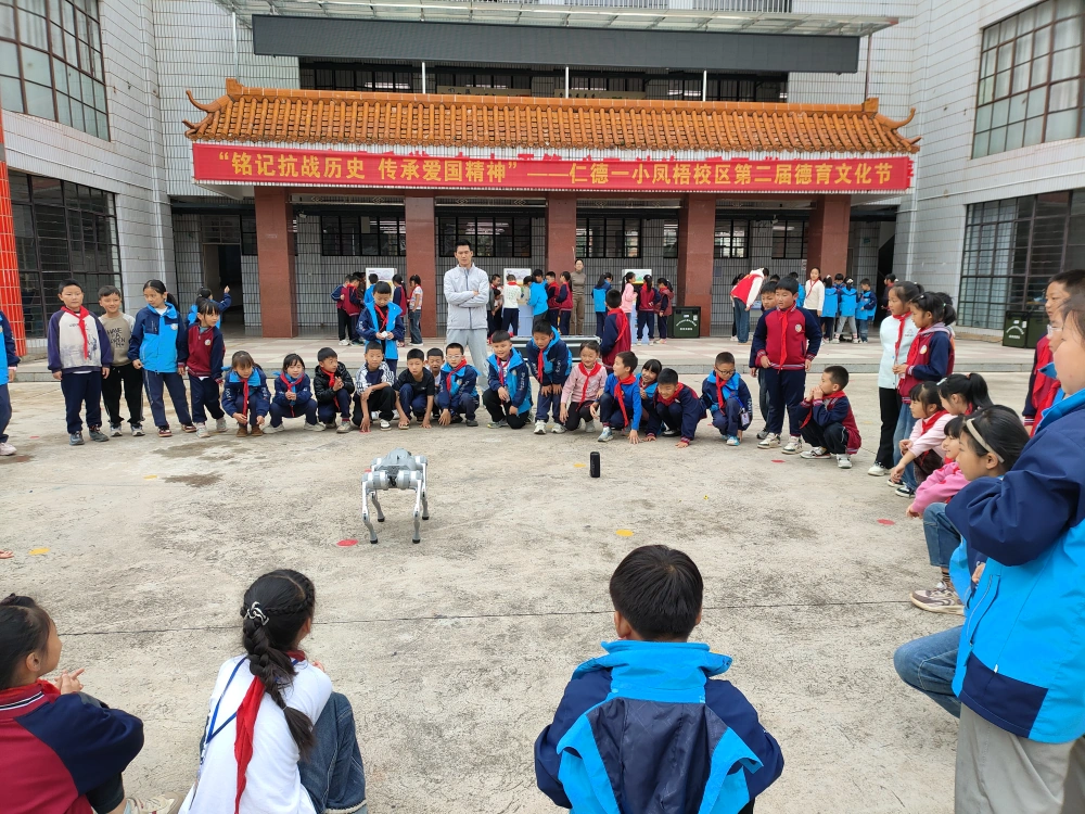 此外,备受期待的四足机器人也亮相活动现场。这台机器人灵活地完成行走、转弯、跨越障碍等动作,时而迈着稳健的步伐穿梭在人群中,时而停下 “展示” 可爱的姿态,引得同学们围拢观看,纷纷举手想要与机器人互动。工作人员一边操控机器人,一边向同学们讲解机器人的工作原理,从机械结构到编程控制,用通俗易懂的语言将复杂的科学知识转化为生动的讲解,让同学们对人工智能与机器人技术有了初步的认识。