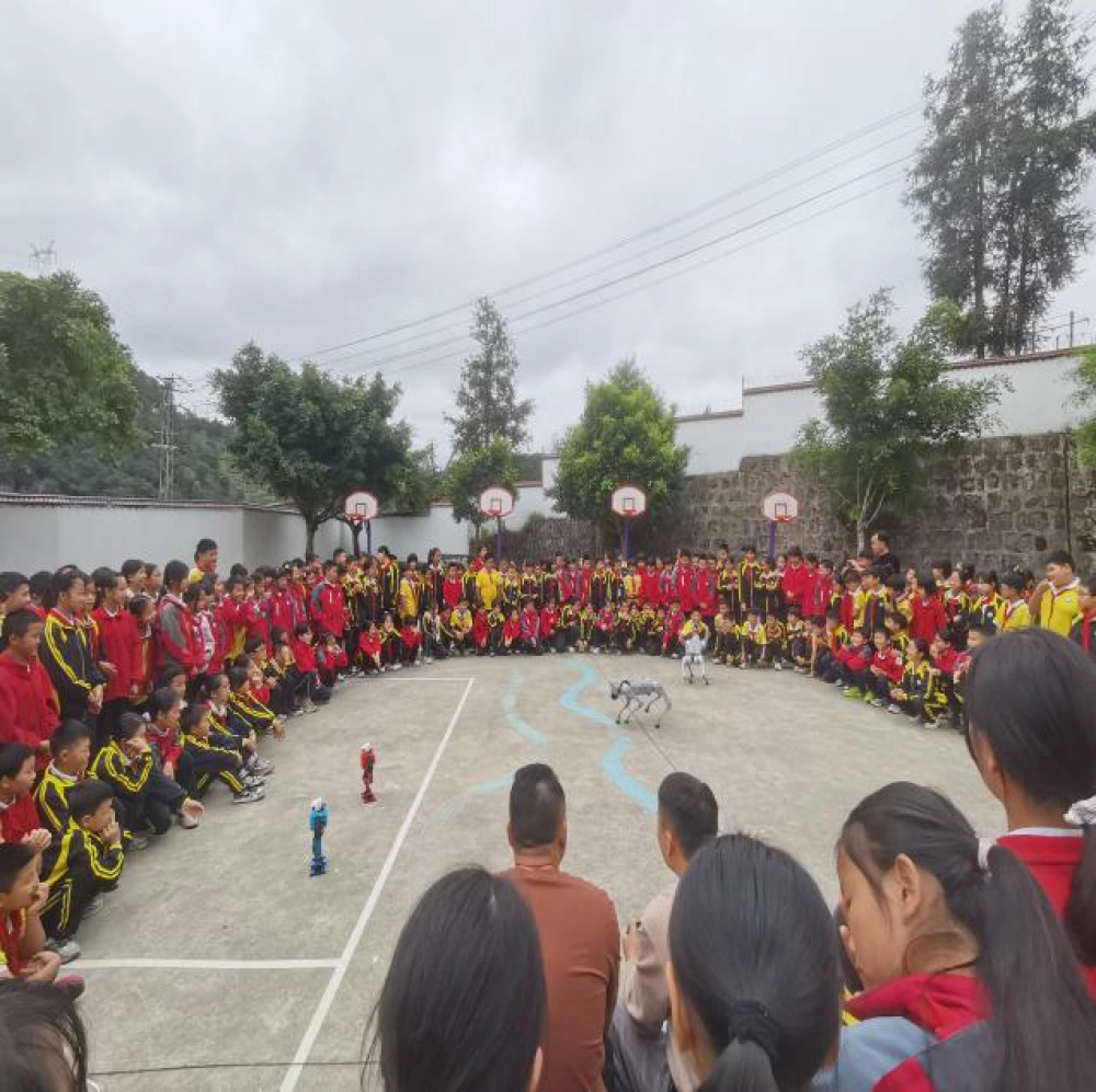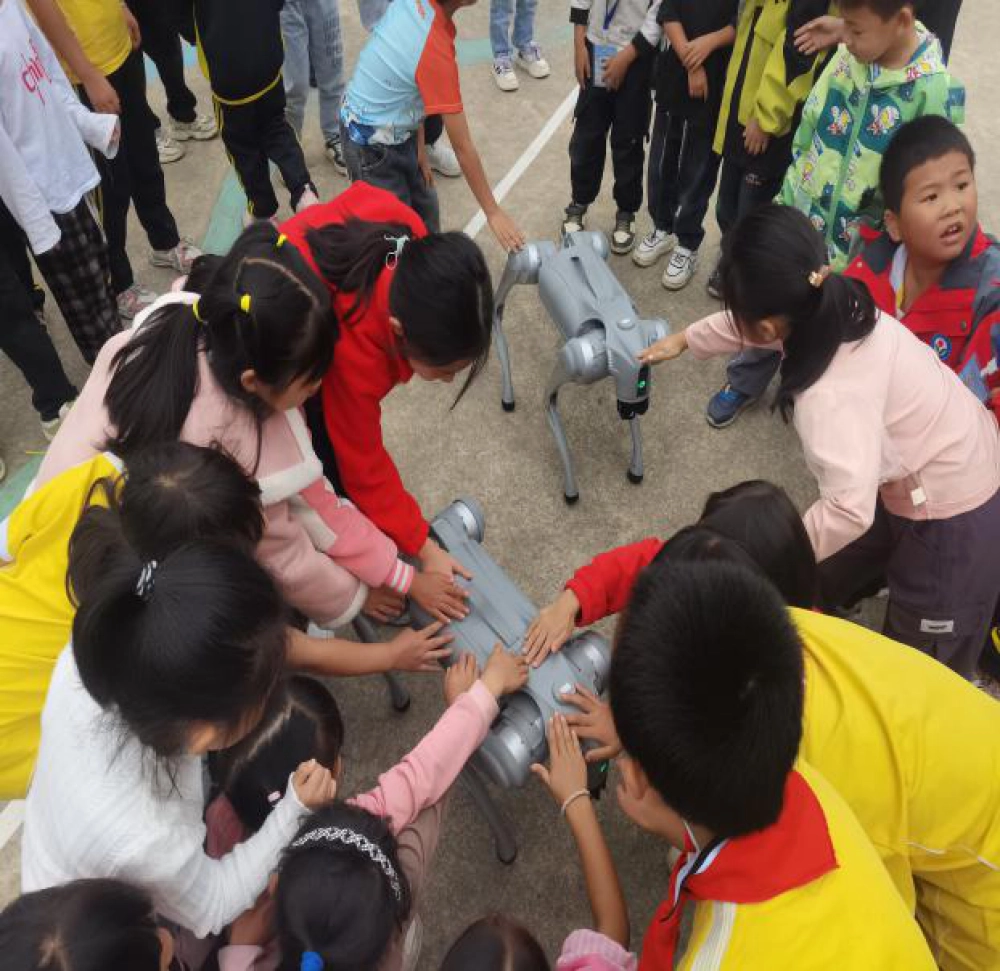 活动现场,气氛热烈而有序。科协的志愿者们精心布置了多个科普展台,内容涵盖物理、化学、生物、人工智能等多个领域。在“机器人互动区”,会跳舞、会对话的智能机器人吸引了孩子们的目光,大家纷纷围上前,与机器人进行亲密互动,感受科技的魅力;在“机器狗表演区”,憨态可掬的机器狗向同学们打招呼,和同学们握手,按照志愿者的指令进行表演,赢得了学生们的不断喝彩。