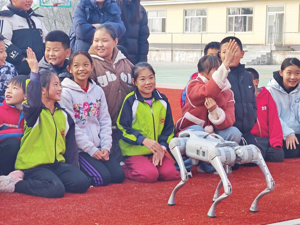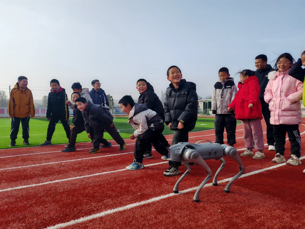 此次活动中最引人注目的环节,莫过于“与机器狗竞跑”。当科技感十足的机器狗在操场上灵活地行走、跳跃时,孩子们发出了阵阵欢呼。在工作人员的鼓励下,几名大胆的学生走上前来,与这位特殊的“运动员”展开了一场趣味竞跑。虽然孩子们最终在速度上更胜一筹,但机器狗展现出的稳定性和智能反应,在他们心中播下了未来科技的种子。