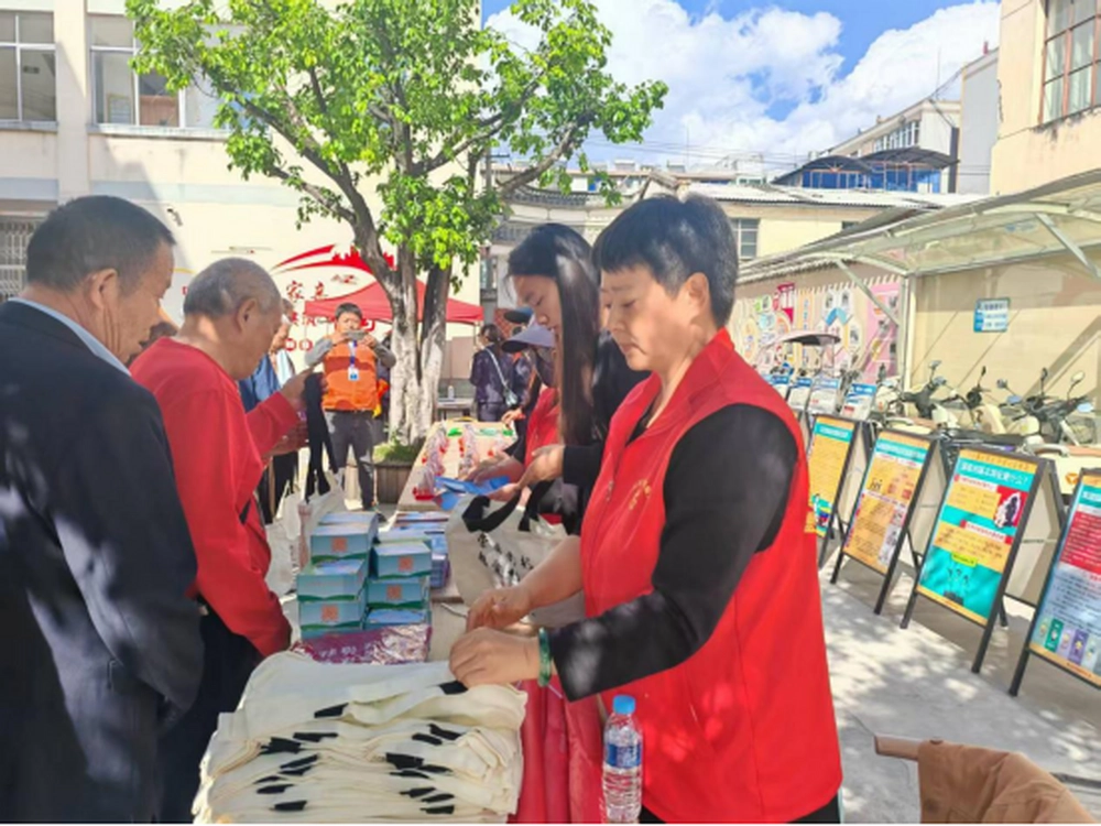 活动期间,科普志愿者穿梭在人群中,为到场的老年朋友逐一发放《反邪教知识手册》《禁毒宣传册》《科普法》等资料 960 余份,同步送上印有科普标语的环保袋、纸巾等实用品。