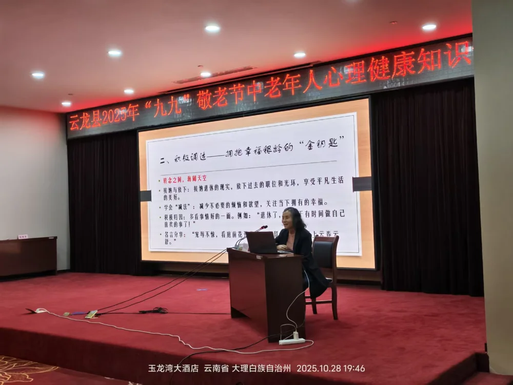 2025年10月28日,云龙县科学技术协会与县老年人体育协会联合举办中老年人心理健康知识讲座,为中老年群体送上心理关怀。