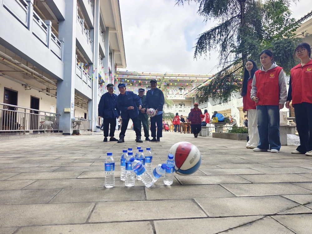 游园互动则充满了欢声笑语。“趣味保龄球”“圈住幸福”“万里可挑一”“百步穿杨”“钓钓乐”“水瓶快跑”等游戏项目吸引了老人们踊跃参与。志愿者们耐心搀扶、细心指导,协助行动或或视力较弱的老人参与活动,适时调整规则与距离,确保每位老人都能能乐在其中。游园活动结束后,老人们用游戏获得的兑奖券兑换了毛巾、帽子、抽纸、清凉油、沙琪玛、金秋砂糖橘等实用奖品,现场洋溢着温馨祥和的氛围。