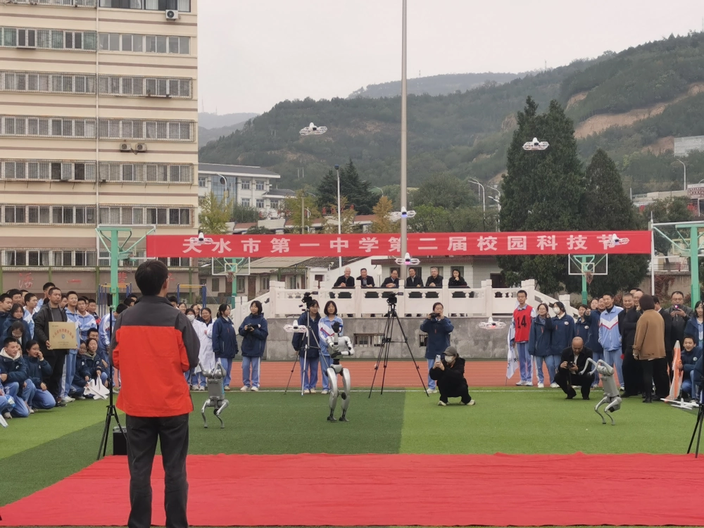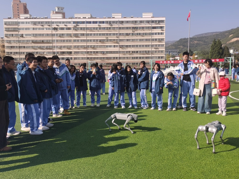 校园科技节现场热闹非凡,天水市科学技术普及工作队、天水市科技馆、天水市渔业工作站、天水海洋乐园等7家单位和社会机构带来了丰富的科普展品,为科技节增添了多元资源。其中机器人互动舞台秀、智能机器狗秀、科普实验秀三大互动板块成为“吸睛焦点”。