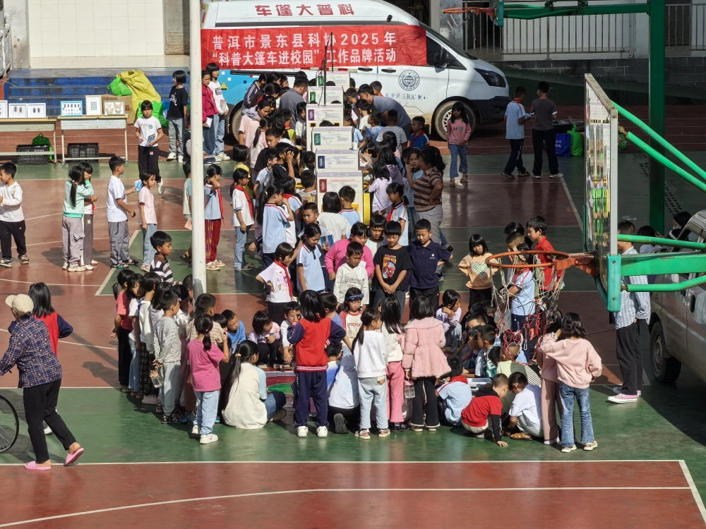 10 月 28 日,景东县科普大篷车再度出发,景东县科协联合中科院哀牢山生态站、县气象局,深入景福镇中心小学偏远学校开展科普服务。覆盖师生超360余人次,累计发放各类科普书籍及实验小教具1000余份,为偏远地区师生送去了一场丰富的科技盛宴。
