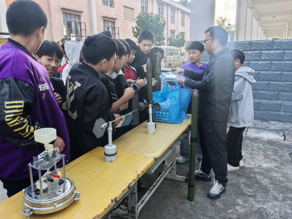 10 月30 日,景东县科普大篷车再度出发,景东县科协联合中科院哀牢山生态站、县气象局,深入大朝山东镇中学偏远学校开展科普服务。覆盖师生超240余人次,累计发放各类科普书籍及实验小教具2000余份,为偏远地区师生送去了一场丰富的科技盛宴。