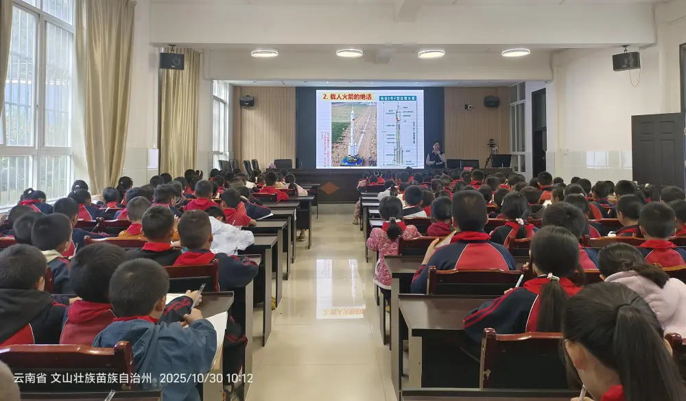 2025年10月30日,中国科学院老科学家科普演讲团的六位专家组团走进马关县六所小学,围绕机器人、航天、植物、宇宙、水资源、科学家精神等主题开展6场专题讲座,为全县2645名师生献上兼具专业性与趣味性的科学盛宴,点燃县域青少年科学探索热情。