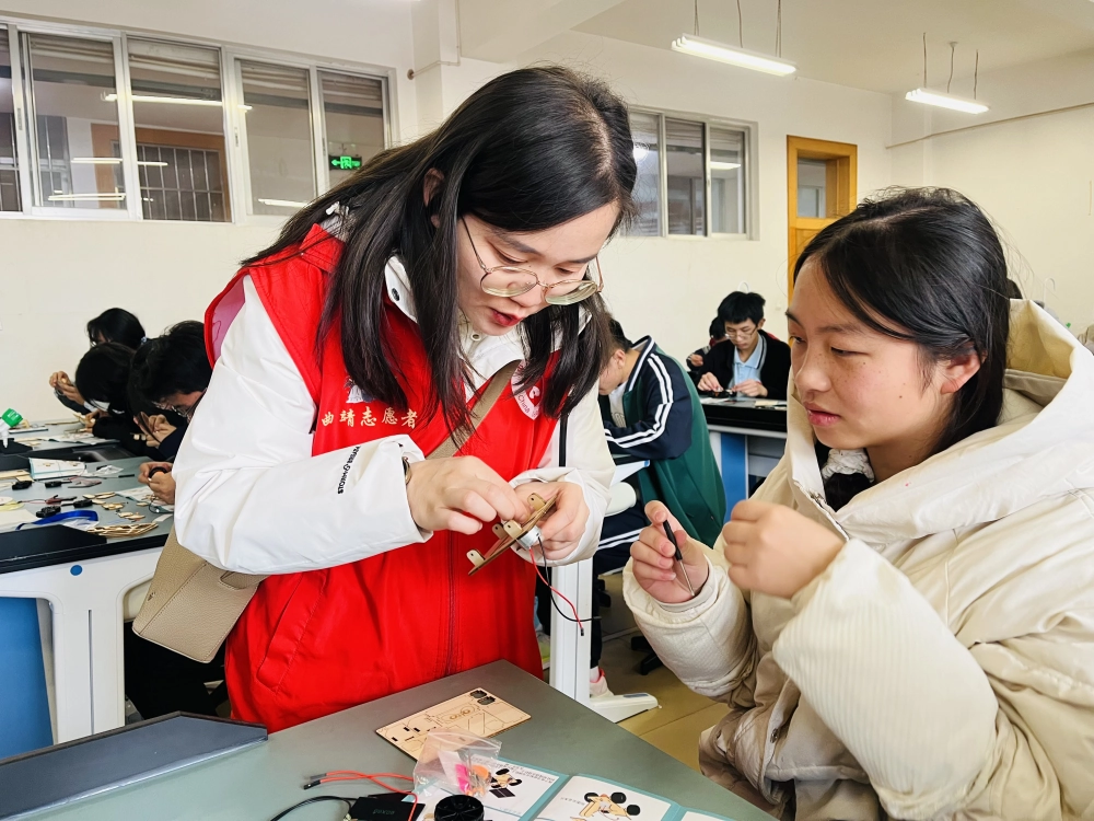 在下午的科普手工制作环节,同学们在科技馆辅导员的指导下,动手组装火星探测车、制作人造卫星,体验从零件到成品的创造乐趣,在实践中锻炼了动手能力和解决问题的能力。