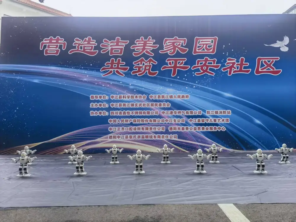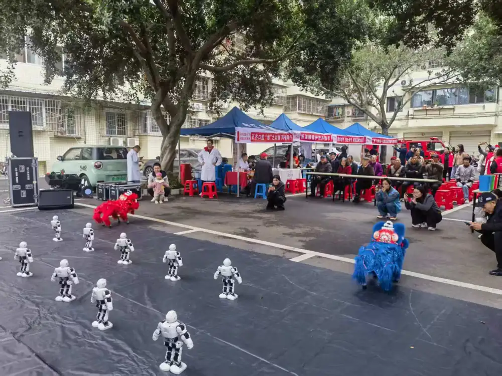 智能机器人与机器狗迈着精准的步伐亮相现场,引来了社区居民的阵阵欢呼声,憨态可掬又充满科技感的表演瞬间点燃了氛围,不仅吸引了众多小朋友驻足观看,也让不少老年居民近距离感受到了科技的魅力。