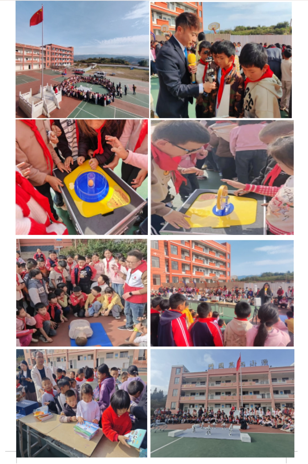 活动现场气氛热烈,内容丰富,形式多样。县科协的科普大篷车带来了多种互动展品,涵盖了光学、力学、电磁学等多个领域。学生们围着“窥视无穷”“尖端放电”等展具,在“试一试”“想一想”中感受科学的奇妙与乐趣,眼中充满了好奇与求知的渴望。县气象局的工作人员则为孩子们带来了一场生动的气象知识“小课堂”。他们用通俗易懂的语言,结合富源本地气候特点,讲解了天气预报的制作、常见气象灾害的成因及防御措施。逼真的气象模型和有趣的互动问答,让同学们对风云变幻的天气现象有了更科学地认识。县红十字会的工作人员则聚焦于生命安全教育,现场演示了心肺复苏、海姆立克急救法等应急救护技能。在工作人员的耐心指导下,同学们踊跃参与模拟操作,初步掌握了在紧急情况下如何正确呼救、进行初步救助的关键步骤,安全意识与救护能力得到了有效提升。