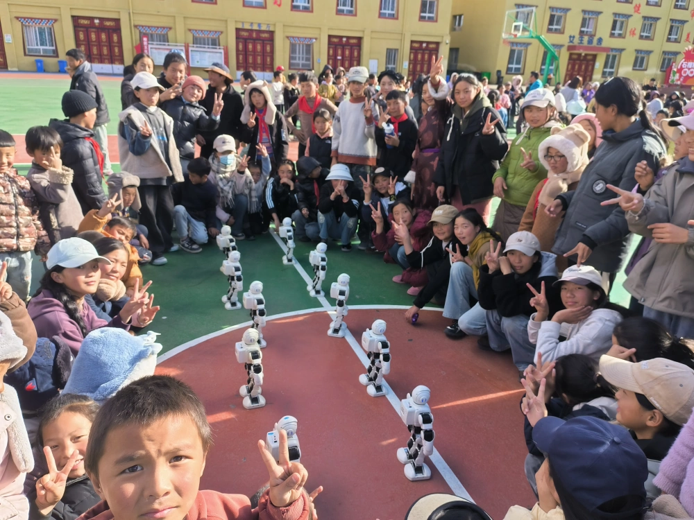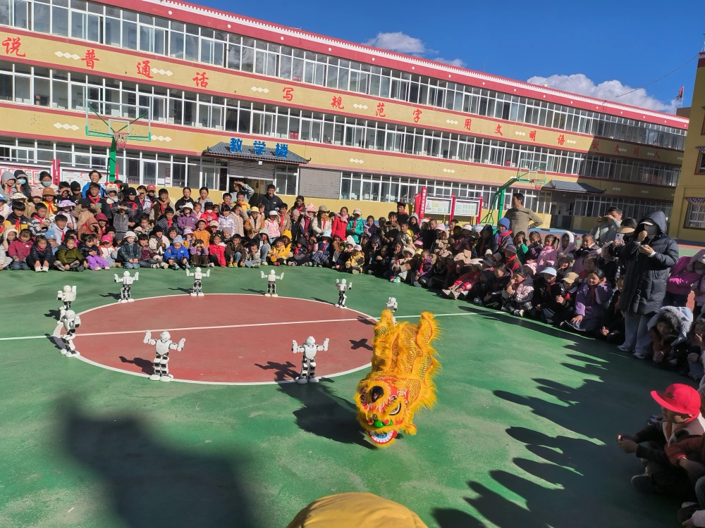 本次活动延续了首站的精彩,并进一步丰富了内容。活泼可爱的跳舞机器人与仿生狮子狗再次成为全场焦点,它们伴随着动感音乐做出的高难度动作与逼真互动,引发了南木达中小学校1200余名师生的阵阵喝彩与热烈掌声,让孩子们在近距离观赏中,直观领略了人工智能技术的魅力与乐趣。