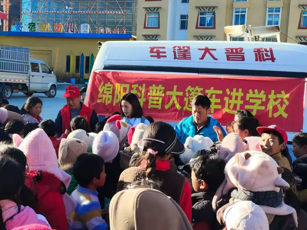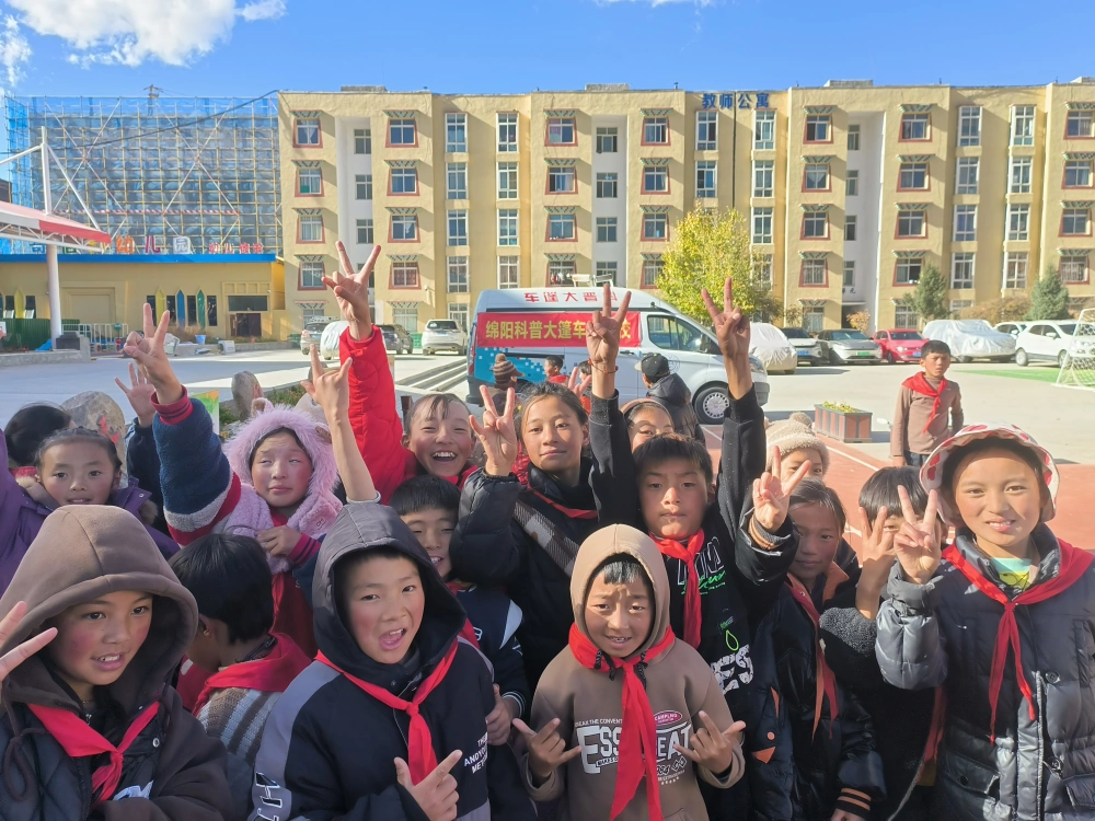 继在马尔康市第四小学成功举办首场活动后,2025年11月6日,由共青团绵阳市委、绵阳市科协共同主办的“流动少年宫·情暖阿坝行”科普公益活动持续深入,第二站走进了马尔康市壤塘县南木达中小学校,为这片高原上的学子带来了又一波科技与热情交融的浪潮。