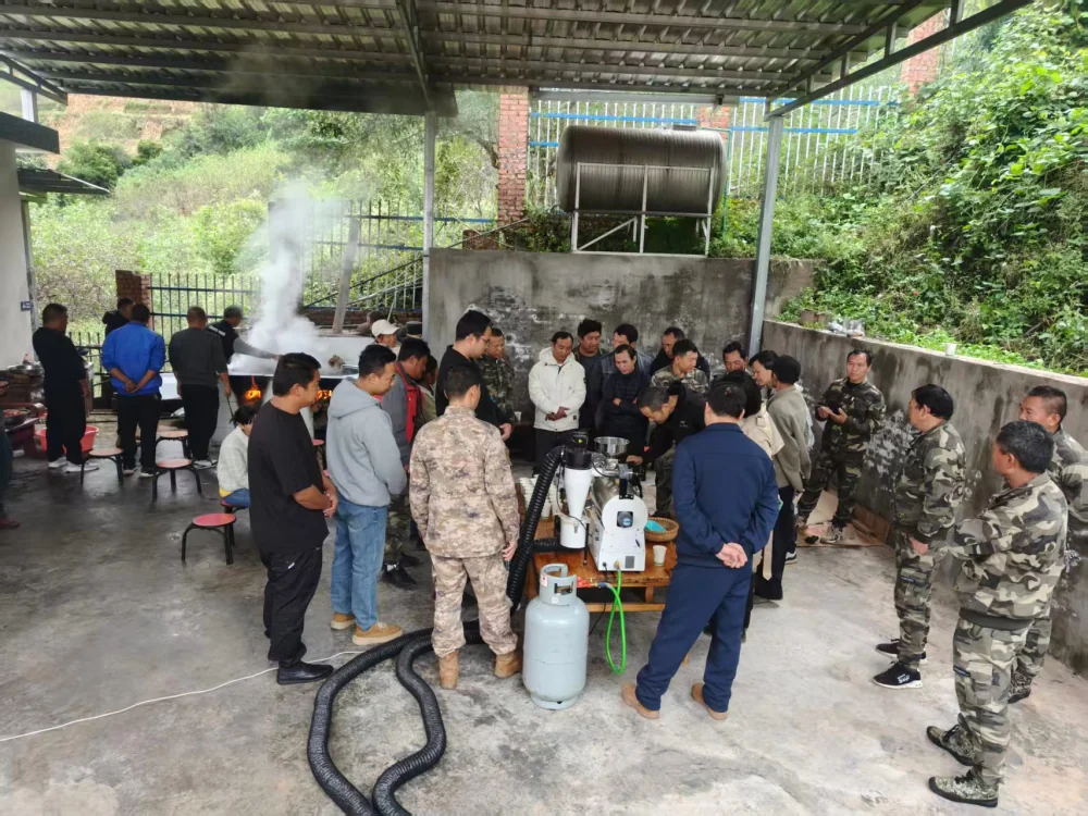 培训在杞拉么村委会咖啡庄园举行,本次培训以课堂教学和沉浸式实操体验为核心,分为2个阶段进行,第一阶段是咖啡提质增效培训,通过理论培训让参训学员掌握咖啡合理采摘的时间、标准与科学方法,减少采摘环节的品质损耗;普及咖啡种植后期提质增效关键技术,提升咖啡鲜果品质与产量。第二阶段是咖啡烘焙及冲泡体验,通过实际操作帮助学员了解咖啡烘焙的基本原理、设备操作及不同烘焙度对咖啡风味的影响,初步掌握基础烘焙技巧; 让学员熟悉常见咖啡冲泡器具的使用方法,掌握标准冲泡流程,提升咖啡品鉴能力。