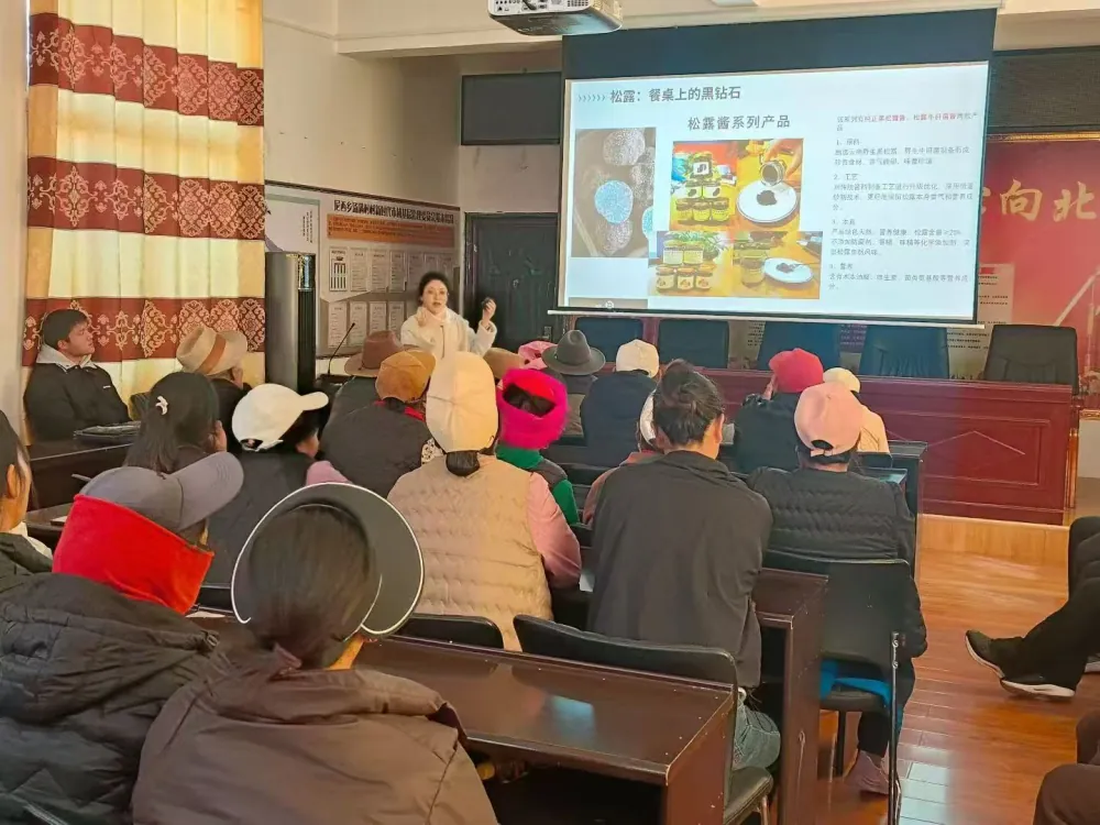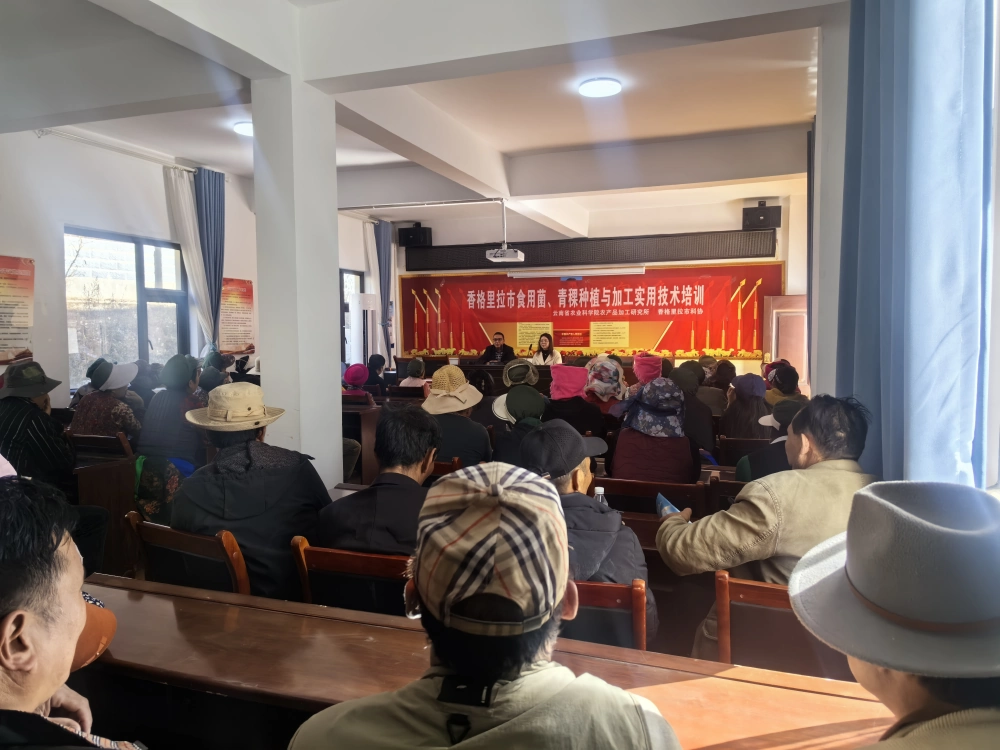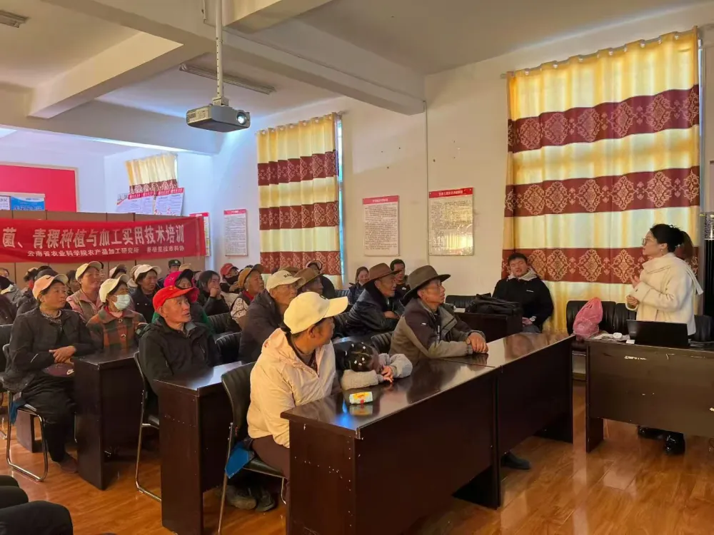 培训以“理论授课+大篷车辅助科普”的形式开展,覆盖养殖、种植与加工多领域。在种植加工板块,专家结合迪庆高海拔、低温的气候特征,针对当地特色产业重点讲解:青稞方面,从抗寒优质品种选择、生长期水肥精准管理、病虫害绿色防控,到青稞米脱壳加工、青稞面精细研磨、青稞酒发酵工艺等全链条技术,指导农户提升产量与产品附加值;食用菌方面,聚焦羊肚菌、松茸等本土菌种,详细教学菌种培育、菌棚温湿度调控、采收时机判断及产后烘干、真空保鲜等关键技能,解决农户“种植难、储存难”的痛点。
