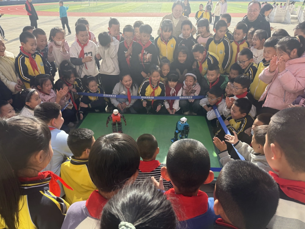 活动现场,机器狗与机甲战车一经亮相便吸引了全体学生的目光。灵活敏捷的机器狗时而跳跃、时而翻滚,精准完成一系列高难度动作,引得同学们阵阵欢呼。智能机器人不仅能跳舞、说相声,还能简单的介绍科普大篷车,让同学们直观感受人工智能的神奇魅力。与此同时,大篷车展品同样亮点纷呈。循环的小球、神奇的雷电等展品涵盖力学、电学等多个领域,将抽象的科学知识转化为生动有趣的互动体验。同学们在科普志愿者的指导下,纷纷动手尝试、仔细观察,在触摸与探索中解开一个个科学谜题,现场学习氛围热烈而浓厚,有效激发了学生们爱科学、学科学、用科学的浓厚兴趣。