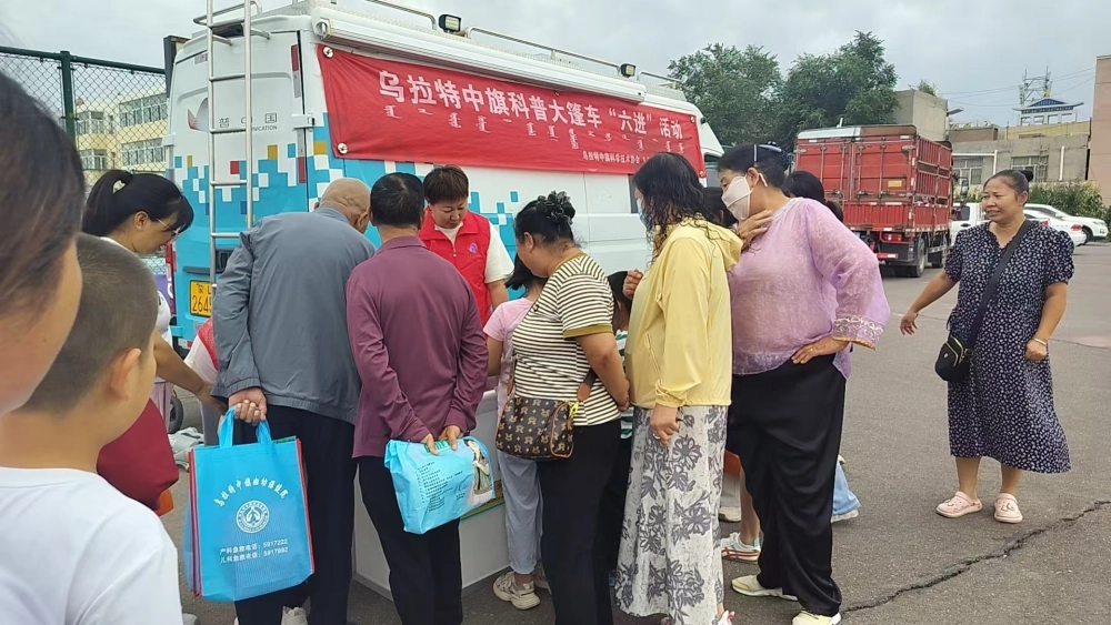 与此同时,科普大篷车旁的宣传资料发放区同样热闹非凡。科普志愿者们为到场的群众递上科学健身指南、公民科学素质百问百答、食品药品知识、老年人科学素质提升行动读本、乌拉特中旗民族工作口袋书等宣传资料,内容涵盖运动生理学基础知识、民族政策法规解读等,既有针对性又接地气。不少居民一边翻阅资料,一边向志愿者咨询问题:“老年人适合哪些温和的运动?”“运动后肌肉酸痛该怎么缓解?”科普志愿者们耐心解答,用通俗易懂的语言将专业知识转化为“家常话”,让大家在领取资料的过程中,既学到了健身技巧,又加深了对民族团结重要性的认识。