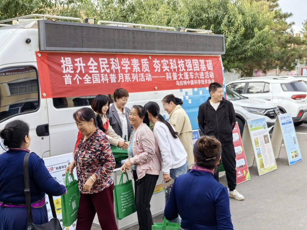 9月25日,中共乌拉特中旗委员会社会工作部在教育路社区举办了“群团进驿站·服务到一线”主题活动,乌拉特中旗科协将科普大篷车以“流动科技馆”的形式,积极将科普服务送到群众身边,为全国科普月系列活动增添了生动的实践内容。