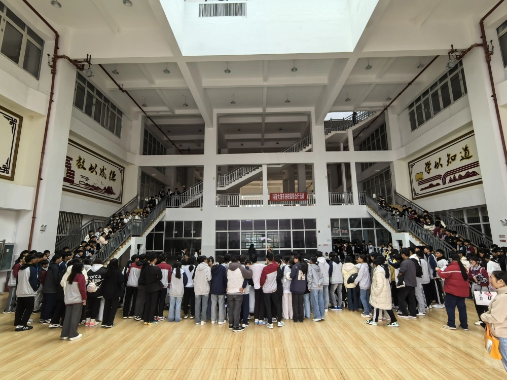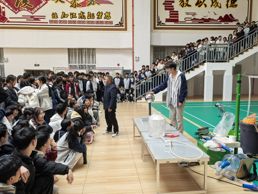 近日,广南县科学技术协会与丘北县科学技术协会携手开展联动科普活动,组织科普大篷车走进丘北县第二中学,为该校300名学生带来一场趣味与知识兼备的科学体验。活动在学校宽敞的室内活动空间展开,现场人气高涨,学生们或围站在展示台旁凝神观看,或有序组队参与互动实验。静电实验的“怒发冲冠”现象引得阵阵惊呼,粉尘爆炸演示让大家直观认识到安全隐患与科学原理的结合,马德堡半球实验环节,学生们手拉手尝试拉开半球,在协作中真切感受到大气压强的力量,灵动的机器狗展演更让现场氛围达到高潮,学生们纷纷凑近观察,充满好奇与兴奋。